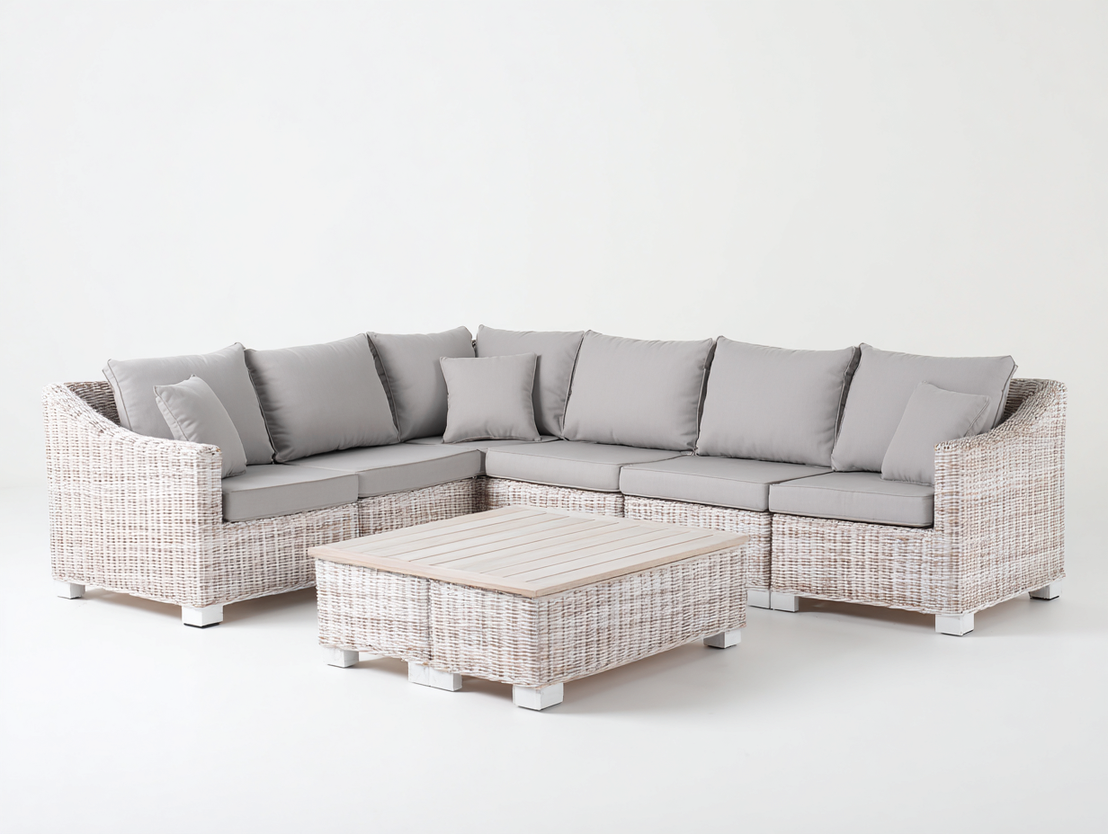 Set di divani da giardino angolare in rattan sintetico 220x220x78 cm - naturale-grigio - comfort per esterno111,76 EUR€
