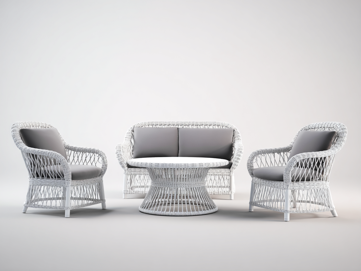 Set di divani da giardino in rattan sintetico 3 posti 190x75x85 cm con 2 poltrone 80x75x85 cm e tavolino 90x50x45 cm - Bianco - Design elegante per esterni114,34 EUR€