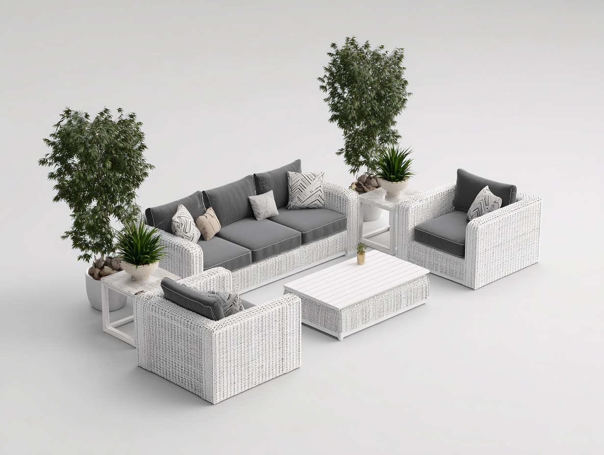 Set di divani da giardino 240x160x80 cm - intrecciato - bianco-grigio - per esterni - design moderno111,65 EUR€