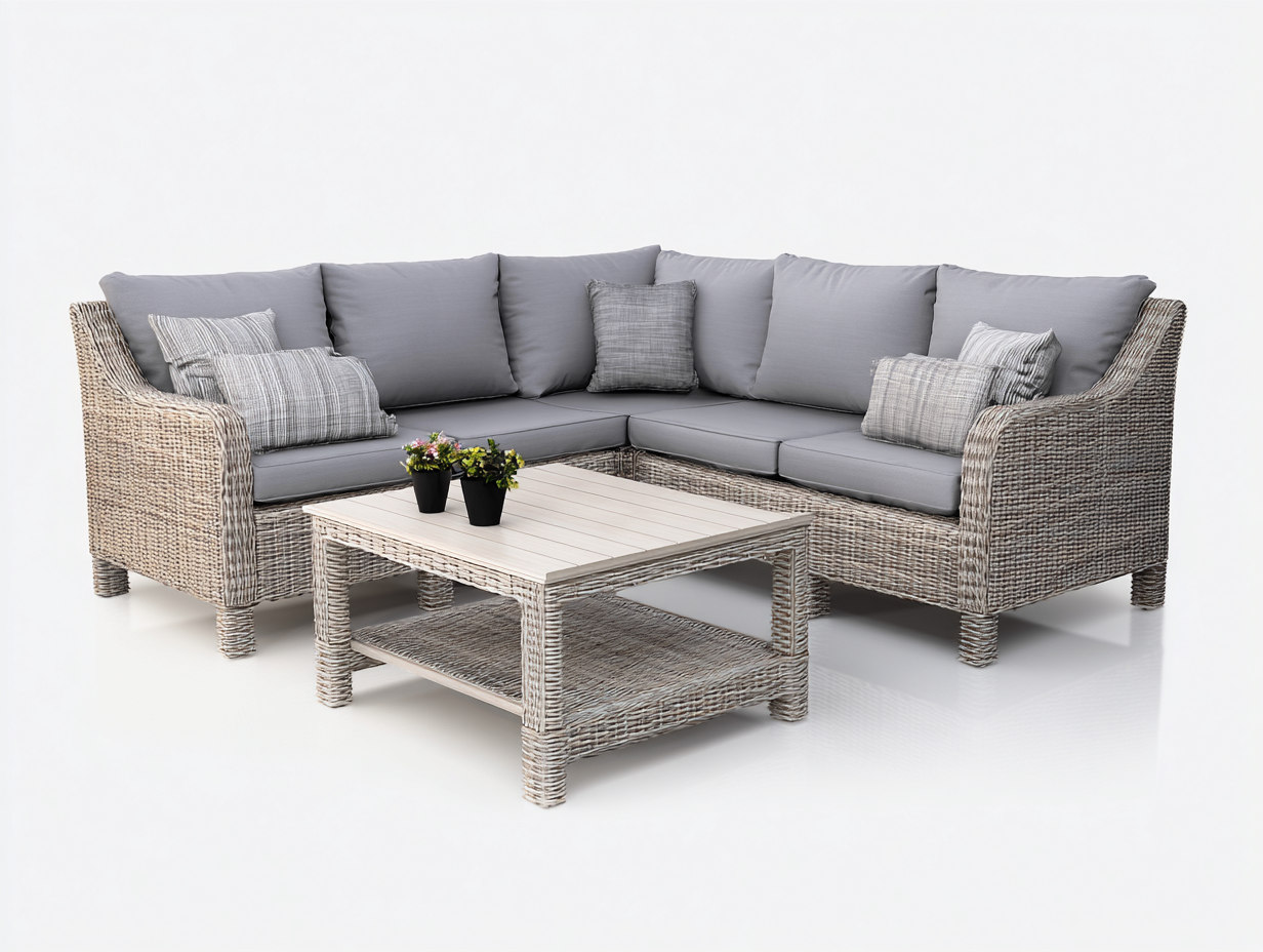 Set di divani da giardino angolare in rattan sintetico con tavolino 260x200x78 cm - grigio-bianco - design moderno per esterni113,58 EUR€