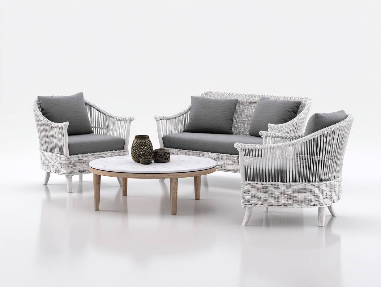 Set di divani da giardino in rattan sintetico con tavolino 180x80x78 cm - grigio-bianco - design moderno per esterni